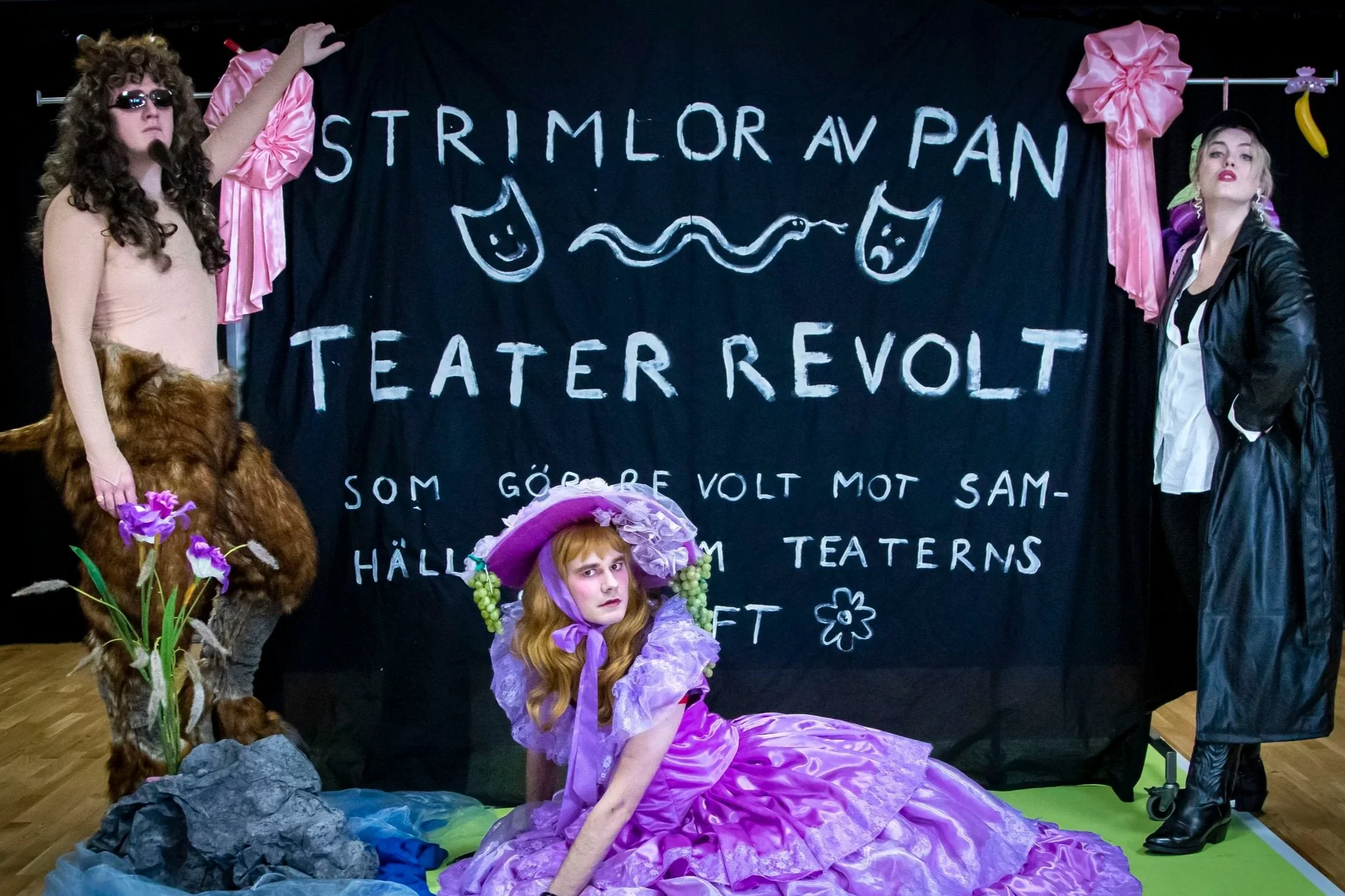 Vi får följa frigruppen Teater Revolt som lyckats nästla sig in på teatern och med väldigt varierande framgång turnerar Östergötland med sin pjäs om halvguden Pan och nymfen Syrinx.